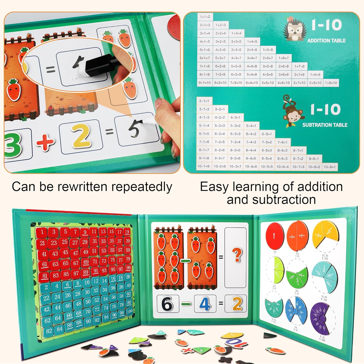Zamień naukę matematyki w grę z tym interaktywnym zestawem 3 w 1 - magnetyczne płytki i kółka zachęcają do logicznego myślenia, rozumienia wizualnego i rozwoju podstawowych umiejętności matematycznych w zabawny i praktyczny sposób!