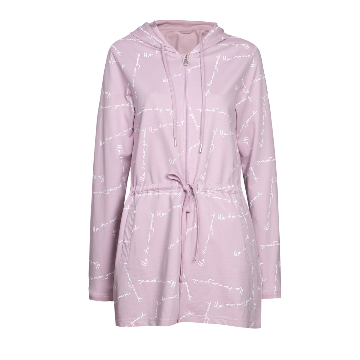 Ta damska bluza z długim rękawem ma kaptur i ściągacz w pasie, który pozwala dopasować ją do nastroju. Miękki, w 100% bawełniany materiał zapewnia komfort noszenia, a sportowy wygląd dopełniają subtelne detale.