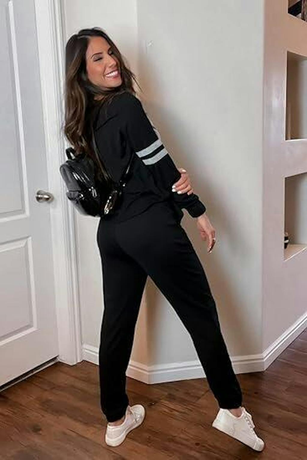 Ten wygodny i modny dwukolorowy komplet to idealny wybór na co dzień jesienią i zimą.